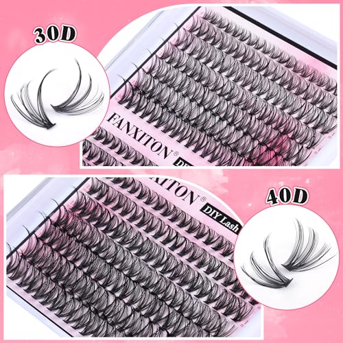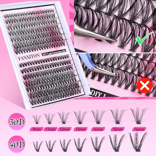 DIY Lash Extension Kit Natural Lash Clusters 30D+40D Mix 9-16 mm D Curl lndividual Lashes Lash Remover 280 pcs Wispy Eyelash Extension Kit with Lash Bond and Seal and Lash Tweezers by FANXITON